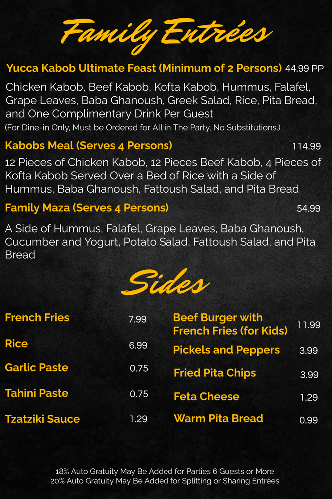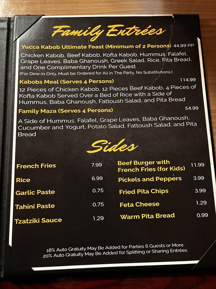 Yucca Kabob Menu (Update 2025)